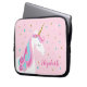 Esta bolsa de laptop apresenta um monocórnio branco e bonito, com estrelas e brilho dourado falso em um fundo pastel cor-de-rosa. Personalize-o com um nome.