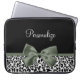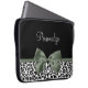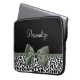 Um elegante padrão preto-e-branco de leopardo com um arco verde-escuro. Personalize esta design de impressão de animais femininos adicionando o nome da sua garota favorita. O arco é uma imagem digital, não uma fita real.