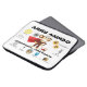 A imagem de um macaco super-herói branco Bolsa de laptop do Kid com "ARMS AKIMBO ENVIRONMENTAL CRIME FIGHTER" e Y-NOT-ME. Só a Arms Akimbo sabe exatamente o que é "negócio de macacos". Sua história é extraordinária. Vou falar-vos disso um dia destes. Ele é um super-herói que luta contra o crime.