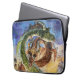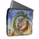 Capas de Laptop Dragões Ascendentes por Traci Van Wagoner são perfeitas para os amantes de dragões de todas as idades. Esta arte de dragão apresenta uma pintura original de um dragão verde entrelaçado e um dragão dourado com uma coroa em um céu dramático de pôr do sol. O dragão verde tem uma fileira de casas em seu pescoço e algumas casas estão caindo. Os amantes de arte de fantasia vão adorar isso!