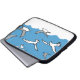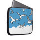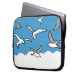Saco para um passarinho. Um bando de pássaros voa alto no céu. A ilustração mostra gaivotas no ar. Bolsa de laptop de presente para observador de pássaros ou ornitólogo talvez.