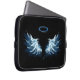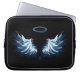 Capa Para Notebook Asas Anjos Azuis Brilhantes em fundo preto