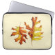 O outono deixa bolsa de laptop com uma ilustração a tinta e a aquarela, com duas folhas de carvalho amarelo acastanhado. Uma das folhas tem um lado enrolado que se parece com uma mão que dá ao parceiro dançante. Este design de amante da natureza tem um fundo personalizável.
