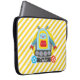Capa Para Notebook Bandas brancas, azuis, e robôs amarelos;