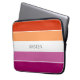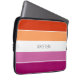 Linda e moderna cor laranja, branca e roxa, com padrão de faixas de cores design (as cores da bandeira lésbica). Adicione o nome da sua escolha para personalizar esta bolsa de laptop legal.
