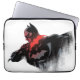 Este trabalho de arte impressionante captura Batman à medida que ele emerge das sombras, refletindo sua dupla natureza como símbolo de esperança e um vingador encoberto na escuridão. O gráfico utiliza um forte contraste entre os negros profundos e vermelhos vívidos para enfatizar o persona intenso e complexo de Batman. O lado esquerdo mostra Batman parcialmente obscurecido por um enfumaçado, efeito texturizado, simbolizando o mistério e as qualidades enigmáticas de seu personagem. O lado direito revela seu perfil determinado em cores claras e ousadas, destacando sua determinação inabalável de combater o crime. Esta representação artística combina elementos design modernos com imagens clássicas de super-heróis, criando uma poderosa representação visual da incessante vigília de Batman sobre Gotham City.