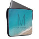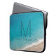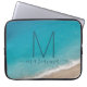 Turquoise ocean water and waves coming onto a soft sand shore with a modern and whimsical monogram initial and name personalized on the front of a laptop sleeve available to protect several different computer sizes. Click 'customize further' to edit the template and change fonts or customization colors, or upload a photo of your favorite beach memory.