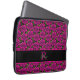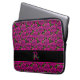 This modern & trendy, beautiful & colorful girly custom Laptop Sleeve features hot pink and magenta roses with green leaves seamless pattern on black with personalised stylish typography name monogram. It's a beautiful and cute any occasional, birthday, mothers day, graduation or anniversary & wedding unique gift ideas for her who loves pink roses. You can easily change the text and colors or remove by customisation tools.