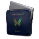 Adicione seus detalhes sobre esta borboleta verde e marrom em design de fundo azul escuro para seu negócio de joias.