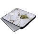 Pássaro Amarelo num galho, inverno, foto de neve numa bolsa de laptop.