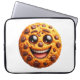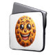 A imagem apresenta um sorridente biscoito de chocolate chip. Pode ser visto como um exemplo de estilo criativo de comida ou uma ilustração humorística e alegre.