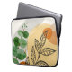 Design de boho botânico com cores verdes, laranja e bege e elementos de aquarela.
