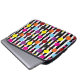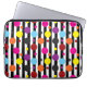 Pontos e faixas. Bolinhas coloridas e bolsa de laptop de faixas pretas e brancas
