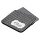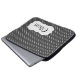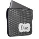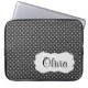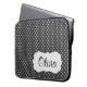 Padrão de bolinhas com efeito colchado e nome de etiqueta embebido em bisel. O nome é editável.