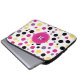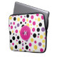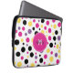 Bolsa de laptop de Bolinhas de Monograma Branco Rosa Quente. Um design divertido e fresco com várias bolinhas em cor-de-rosa retrorado, travesseiro, amarelo e preto sobre um fundo branco. Personalize a bolsa de laptop com seu monograma e nome e adicione um pouco de brincadeira ao seu dia a dia com este design colorido e alegre.