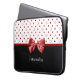 Uma Bolsa de laptop feminina de 15 polegadas com corações vermelhos bonitos e bolinhas modernas. Personalize adicionando seu nome. Perfeito para uma garota na moda em diversão e moda!