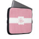 Bolsa de laptop cômoda e giro com padrão de bolinhas rosa, personalizada com nome próprio e inicial.