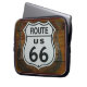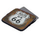 Fotografia de um escudo da estrada 66 na construção de madeira. Foto de Hans Braxmeier.