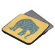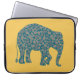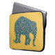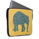 Uma legal Capa Neoprene para personalizar para seu Laptop, com uma silhueta de elefante, cheia de um padrão de Paisley Azul Escuro e Borgonha em um fundo amarelo Ouro que você pode mudar se quiser. Parte da coleção Posh & Painterly 'Heffalumps', esta design pode ser ajustada para ajustado qualquer Bolsa de laptop.