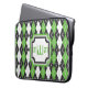 O Argyle retro 8 bits com este esquema verde, cinza, branco e preto que escuta os jogos de jogos de fliperama da antiga escola. Personalize o monograma com as iniciais apropriadas para um toque personalizado. Esta capa está disponível em tamanhos de 10", 13" e 15" para ajustado de uma grande variedade de laptop, tablets, e-readers e netbooks.
