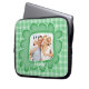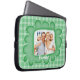 Esta bolsa de laptop de fotos da família branca e verde tem uma caixa de modelo para você mudar com sua própria foto digital. Altere a palavra "Família" para qualquer texto que você queira. Adicione seu nome, monogramas ou outro texto. Se precisar de ajuda para personalizar, envie um email para niteowlstudio@gmail.com.