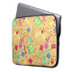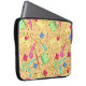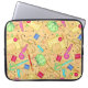 Os amantes das costuras e dos colchões apreciarão esta design de costura colorida e esbranquiçada - máquinas de costura, almofadas de alfinetes, cortadores rotativos, colheres de fio, pinos e agulhas. As noções de costura estão sobre um fundo amarelo cremoso e fazem uma bolsa de laptop divertida.