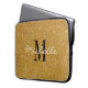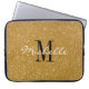 Bolsa de laptop de monograma personalizado com brilho dourado puro. Acessórios monogramas de computador para homens, mulheres e crianças. Impressa a imagem de fundo com realces brilhantes. Ouro de brilho de e brilha cintilantemente design. Ideia de presente de estilo luxuoso com nome personalizado.