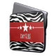 Tendy e moderna Bolsa de laptop de Zebra Sassy Star com um fundo de impressão em preto-e-branco e uma borda vermelha ousada, adornada com um divertido motivo de estrela. Esta manga é perfeita para proteger seu dispositivo com estilo! Este design feminino pode ser personalizado com o texto personalizado de sua escolha. Clique em "Personalizar" para encontrar mais opções de personalização.