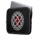 Uma Bolsa de laptop Celta Vermelha Névoa com design de Nó Celta com uma cruz quadrada vermelha no centro.