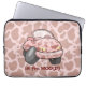 Carro de animação com padrão de vaca rosa. Texto personalizado.