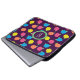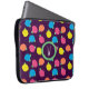 Rosas estilizados em néon brilhante cor-de-rosa, azul, amarelo e coral com folhas verdes neonatais são girados sobre um fundo roxo profundo para criar um padrão floral divertido. Personalize o monograma nesta manga com a sua inicial para torná-lo exclusivo. Esta capa está disponível em tamanhos de 10", 13" e 15" para ajustado de uma variedade de laptop, netbooks e tablets.