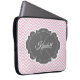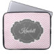 Proteja seu laptop com uma Bolsa de laptop personalizada Chevron rosa. A design de bolsa de laptop apresenta um fundo de fevron rosa e uma etiqueta de cinza de ornamentado para personalizar com seu nome e monograma. Itens adicionais disponíveis com este design também. Entre em contato comigo diretamente para obter assistência com a personalização.