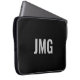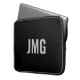 Você pode personalizar o monograma de prata que está no centro desta bolsa de laptop preta.