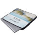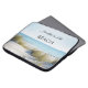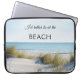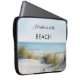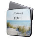 Bolsa de laptop com uma imagem de dunas sobre uma praia e um oceano num dia ensolarado pacífico.