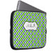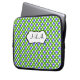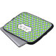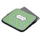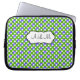 Esta bolsa de laptop bolinhas verde, azul e branca monificada tem uma caixa de texto para personalizar com seu próprio nome, iniciais, nome comercial ou outro texto. Se precisar de ajuda para personalizar, envie um email para niteowlstudio@gmail.com.