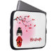 Capa Para Notebook Boneca kokeshi japonesa em sakura floresce