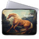 Um cavalo ouro com um mano e uma cauda longos e fluidos é colocado sobre um fundo branco. Arte de George Stubbs.