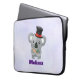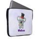 Uma bolsa de laptop com uma ilustração de uma cinza fofa comendo algumas folhas de eucalipto, vestindo um rico de chapéu preto com fita vermelha. Colocado sobre um fundo de aquarela digital roxo claro.