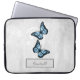 Proteja seu laptop com uma Bolsa de laptop personalizada brilhante de borboletas azuis. A design de bolsa de laptop apresenta borboletas brilhantes que repousam sobre uma vinha floral branca contra um fundo de nuvens de cinza. Itens adicionais disponíveis com este design também. Entre em contato comigo diretamente para obter assistência com a personalização.