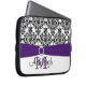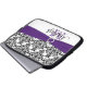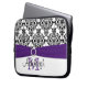 Esta bolsa de laptop branca, preta e roxa personalizada do damasco com um broche da fita e da jóia do FALSO tem as caixas de texto para você personalizar com seu próprio nome, iniciais, nome da empresa, ou o outro texto. Se você precisa alguma ajuda que personaliza, envie por correio electrónico por favor niteowlstudio@gmail.com.