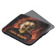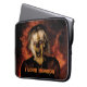 bruxa malvada segurando uma abóbora. Chamas em segundo plano. Cor laranja e preta. Amo o texto do horror que pode ser personalizado por você.