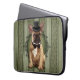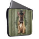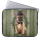 Buldogue francês da jovem corça lindo com chapéu alto, laço, e as listras verdes do vintage no fundo, pintado pelo artista Maryline Cazenave.