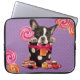 O buldogue francês bonito no balde preto e branco das bolinhas com alcaçuz, doces e pirulito grande, projetou pelo artista Maryline Cazenave.