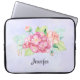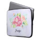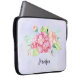 Bolsa de laptop personalizada com um belo e elegante buquê floral criado de aquarela. Flores cor-de-rosa cercadas por folhagem verde-clara. Púrpura de cor d'água.