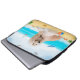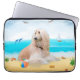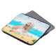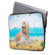 Um cão aficionado sentado na praia é uma ideia perfeita de presente para alguém que ama esta raça de cães.