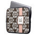 Estes laptop monogrammed bonito e elegante do damasco, tabuleta e/ou eletrônicos luva, caixa, cobrir e saco cor-de-rosa e marrons podem ser personalizados com sua monograma ou inicial no design da fita do ponto do contraste. Escolha de 3 tamanhos diferentes. Projetado por Chrissy H. Estúdio, LLC. Todos os direitos reservados.
