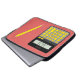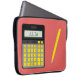 Esta caixa de Laptop incomum e peculiar apresenta uma calculadora com teclas amarelas e letras vermelhas e uma caneta amarela. O texto em segundo plano e nameplate pode ser alterado para atender às suas necessidades. Designs por KPW_Graphics.