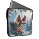 Capa Para Notebook Cardeal de inverno em um abrigo festivo