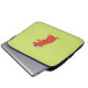 Bolsa de laptop de dinossauros bonitos com uma ilustração colorida de um dinossauro T-Rex vermelho com uma respiração feroz sobre fundo verde. Esta bolsa de laptop bonita tem cores vivas e é adequada para crianças e para crianças crescidas também. :)