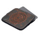Esta mandala de Leão apresenta uma pedra de onyx cercada pelo símbolo da placa, a constelação e o símbolo alquímico de Fogo entre o filigre de cobre avermelhado e as ondas gravadas.